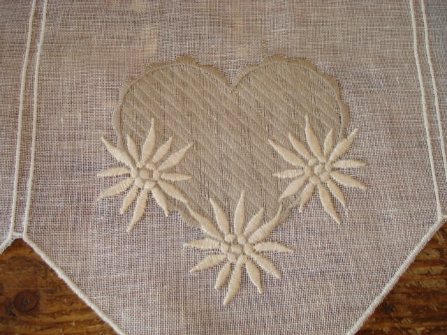 Rideau vendu au motif en 36 cm de haut, lin écru, motif brodé mastic. Ce rideau se coupe dans la largeur.