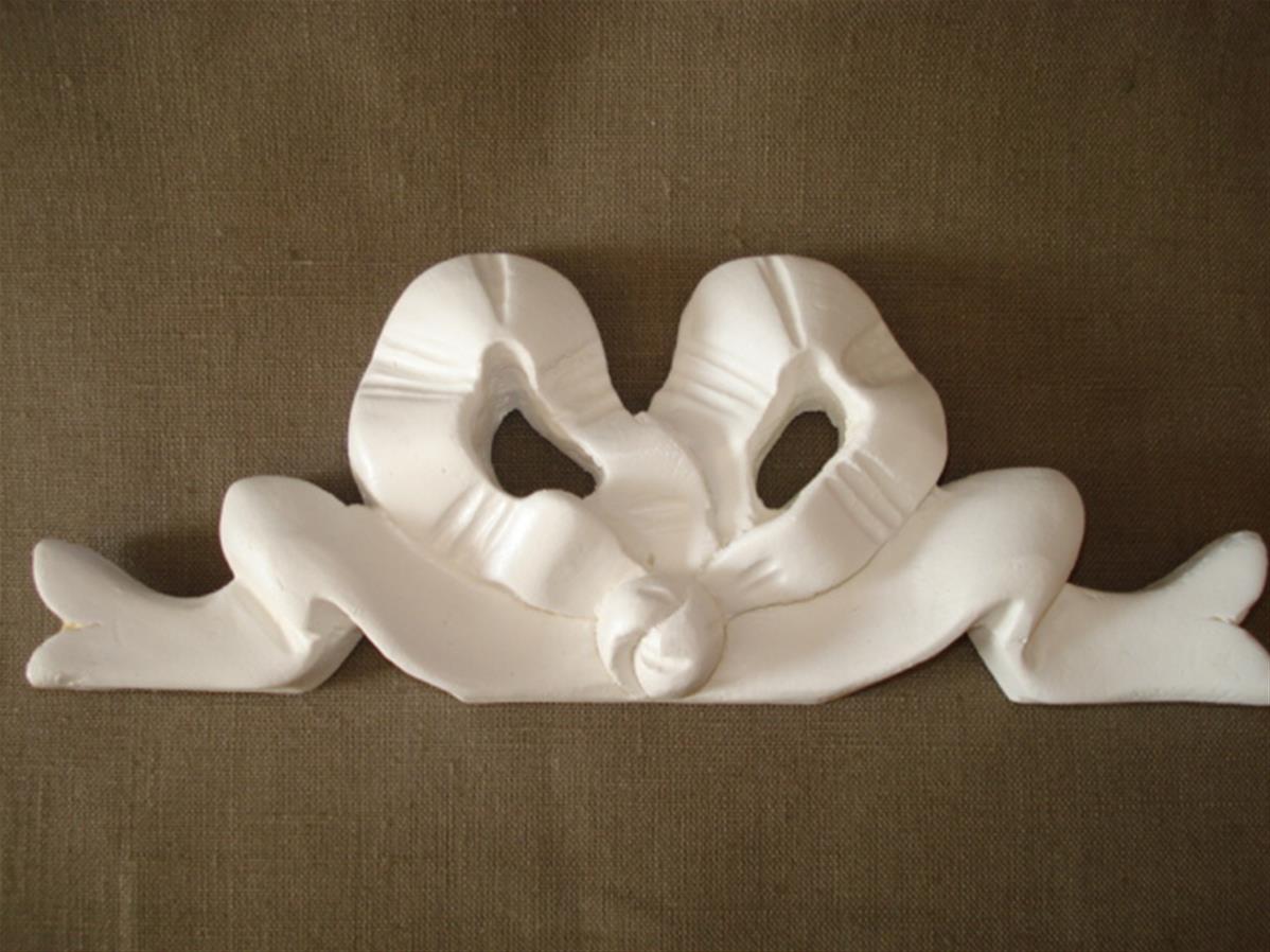 Noeud en polyrésine, longueur 25 cm, hauteur 9 cm. Très léger donc facilement collable. Prêt à être peint ou patiné.